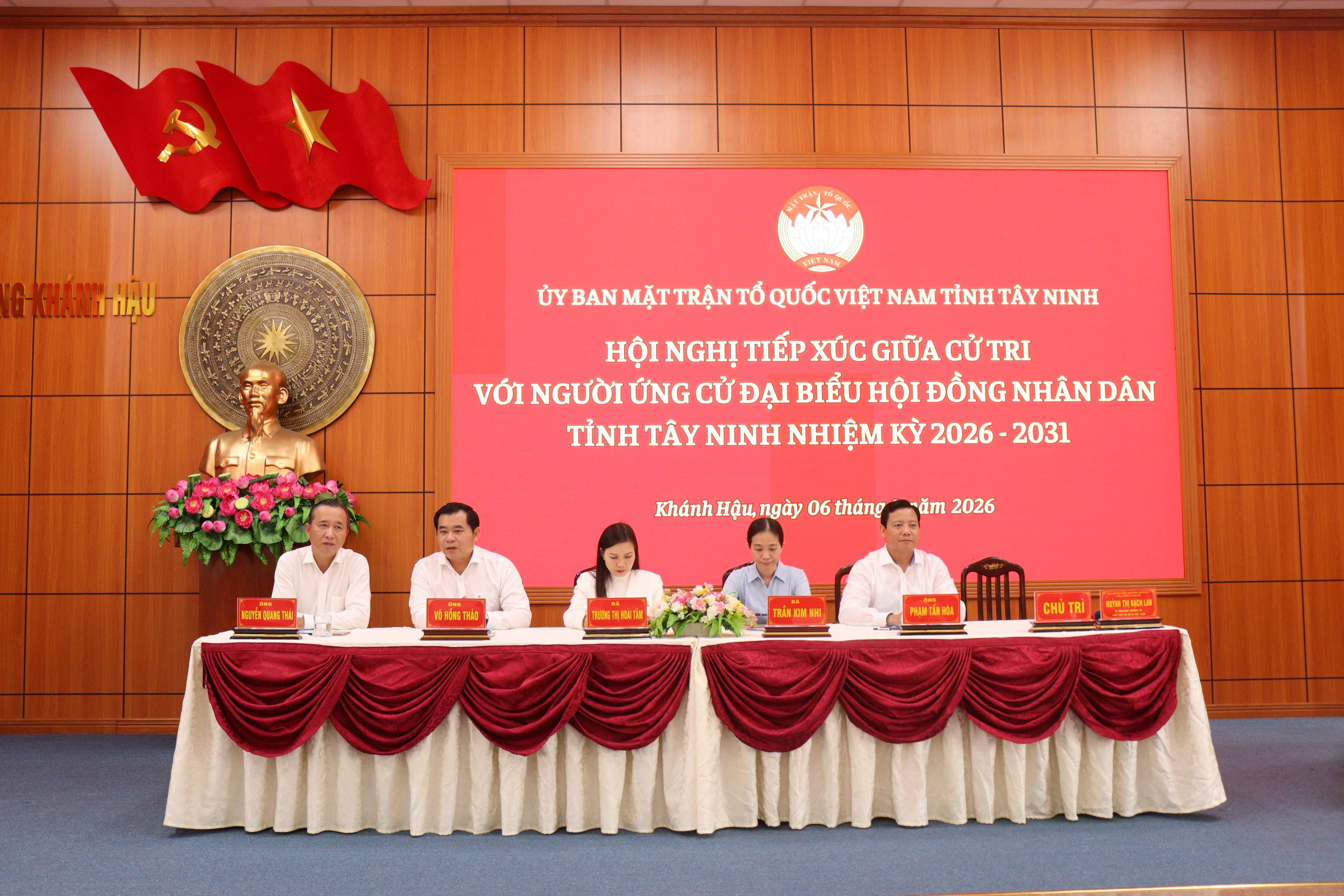 Chiều ngày 06/3/2026, tại phường Khánh Hậu, Ban Thường trực Ủy ban MTTQ Việt Nam tỉnh Tây Ninh tổ chức Hội nghị tiếp xúc giữa cử tri với những người ứng cử đại biểu Hội đồng nhân dân (HĐND) tỉnh khóa XI, nhiệm kỳ 2026–2031, đơn vị bầu cử số 24.