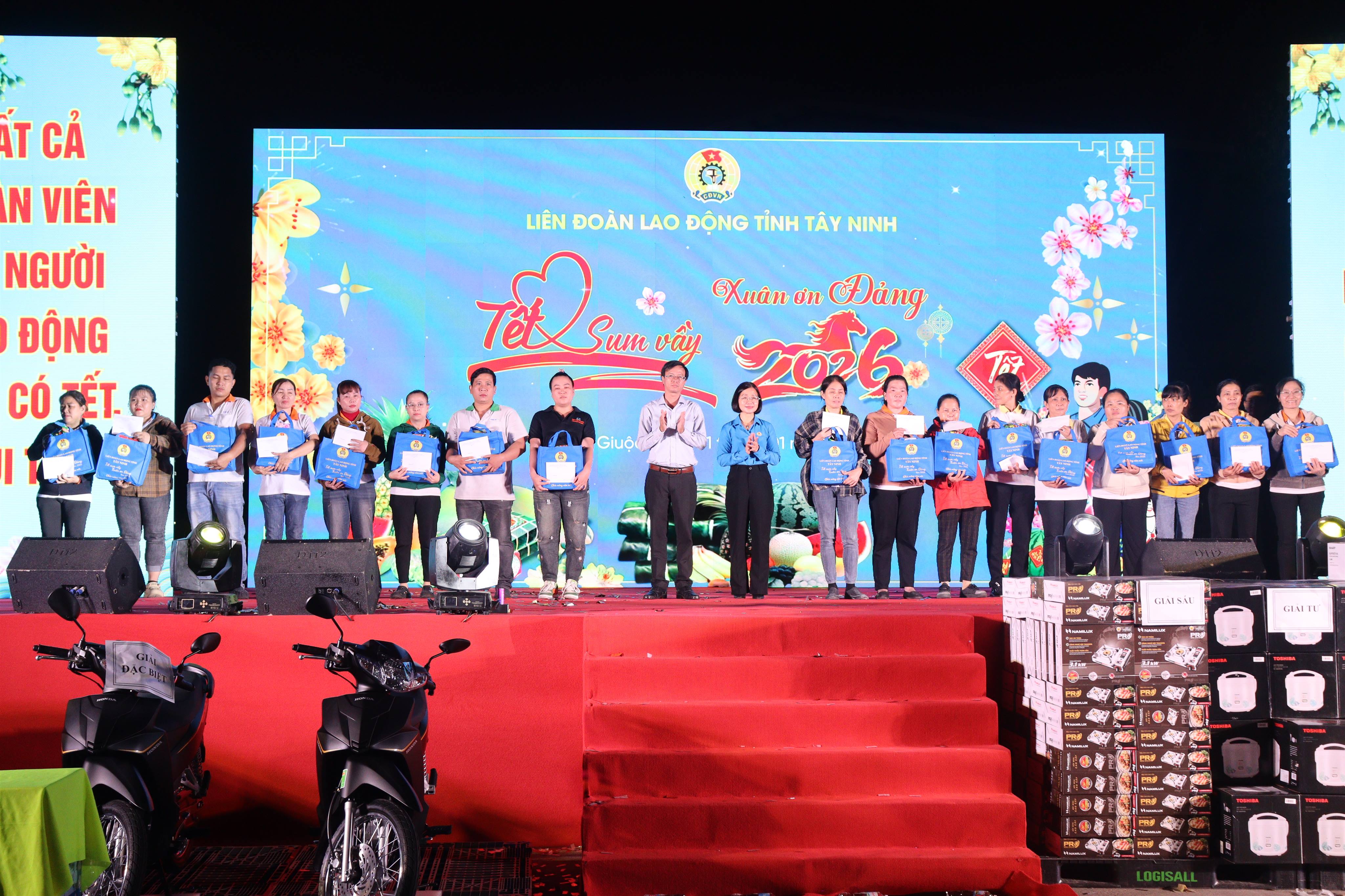 Chiều ngày 31/1, tại Công ty TNHH Giầy Fuluh, Liên đoàn Lao động tỉnh Tây Ninh tổ chức chương trình “Tết sum vầy - Xuân ơn Đảng” năm 2026 nhằm tạo điều kiện cho các anh, chị đoàn viên, người lao động có điều kiện giao lưu sau quá trình lao động, nâng cao đời sống văn hóa tinh thần, góp phần tạo động lực tăng năng suất và hiệu quả lao động.