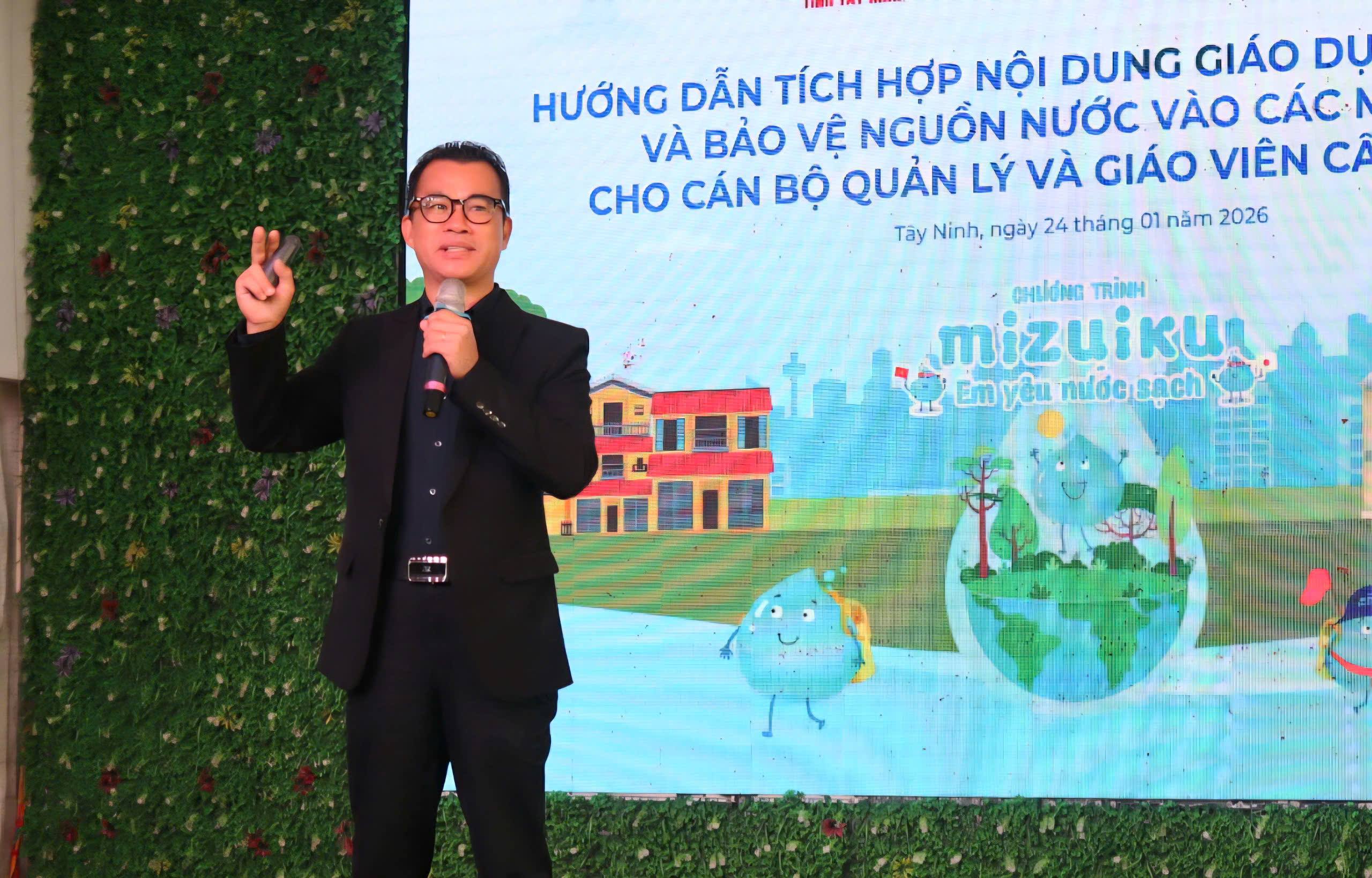 Ngày 24/01/2026, Sở Giáo dục và Đào tạo phối hợp với Suntory PepsiCo Việt Nam tổ chức chương trình “Hướng dẫn tích hợp nội dung giáo dục về tiết kiệm và bảo vệ nguồn nước vào các môn học cho cán bộ quản lý và giáo viên cấp tiểu học”. Hoạt động nằm trong khuôn khổ sáng kiến Mizuiku – Em yêu nước sạch, nhằm nâng cao năng lực đội ngũ giáo viên và lan tỏa nhận thức về sử dụng, bảo vệ tài nguyên nước trong môi trường học đường. Phó Giám đốc Sở Gáo dục và Đào tạo tỉnh Tây Ninh Nguyễn Văn Phước; Trưởng Phòng Đối ngoại, Quản lý Chương Trình Mizuiku – Em Yêu Nước Sạch tại Cty TNHH Nước Giải khát Suntory PepsiCo Việt Nam Nguyễn Lê Thảo An tham dự.