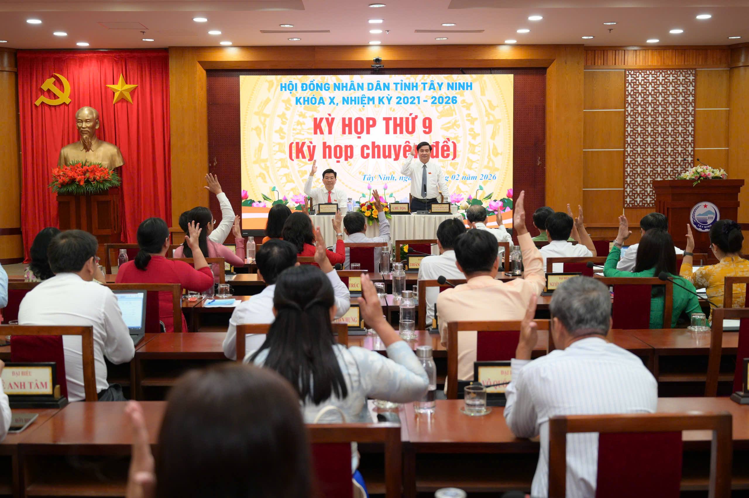 Sáng ngày 12/02/2026, HĐND tỉnh Tây Ninh Khóa X, nhiệm kỳ 2021 - 2026 tổ chức Kỳ họp thứ 9 (Kỳ họp chuyên đề) để xem xét, thông qua nhiều Nghị quyết quan trọng để phát triển kinh tế - xã hội tỉnh trong giai đoạn tới.