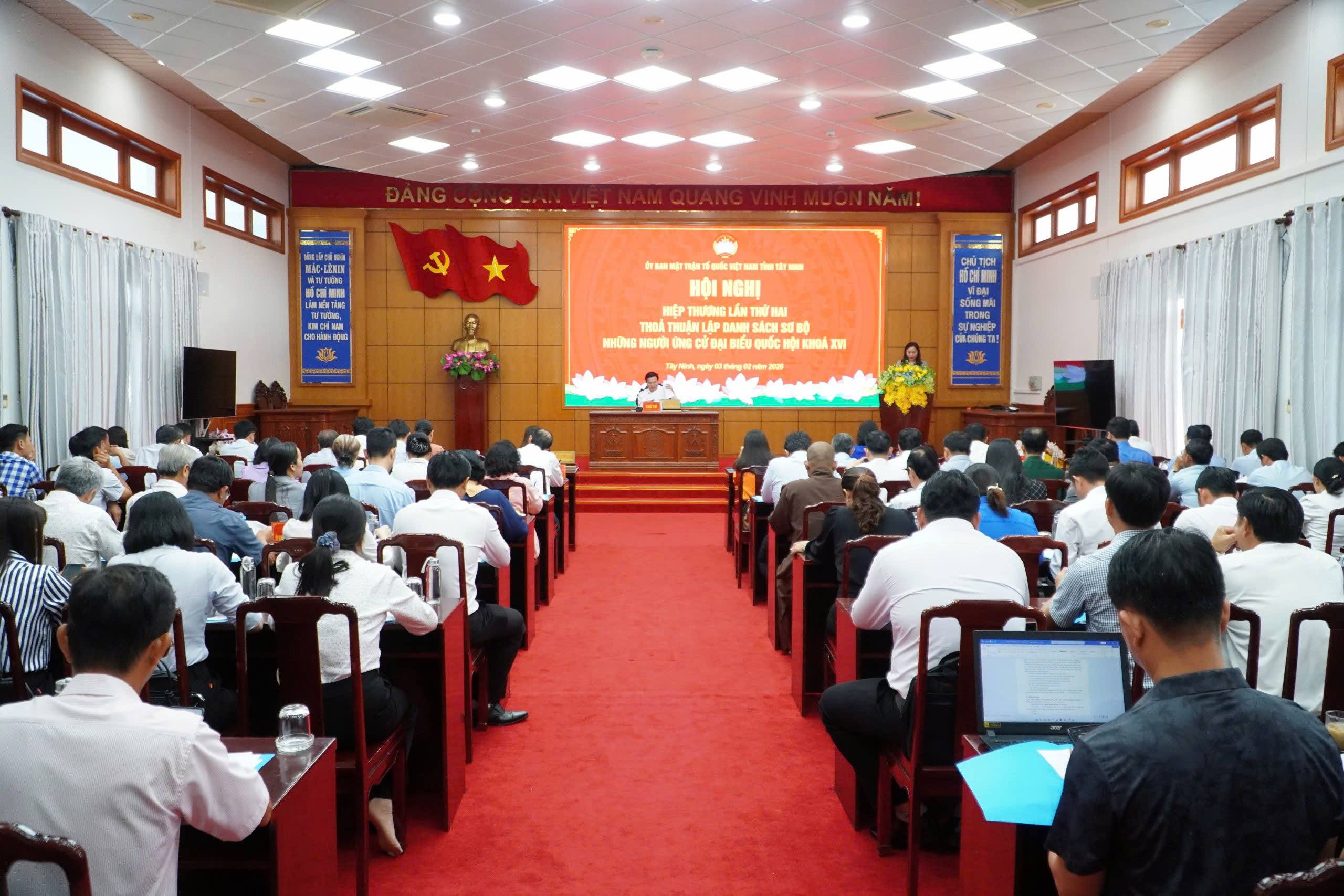 Sáng ngày 03/02, Ban Thường trực Ủy ban MTTQ Việt Nam tỉnh Tây Ninh tổ chức hội nghị hiệp thương lần thứ hai nhằm thỏa thuận danh sách sơ bộ những người ứng cử đại biểu Quốc hội khóa XVI và đại biểu HĐND tỉnh nhiệm kỳ 2026–2031. Hội nghị do Phó Bí thư Tỉnh ủy, Chủ tịch Ủy ban MTTQ Việt Nam tỉnh Nguyễn Thanh Hải chủ trì, với sự tham dự của lãnh đạo Thường trực HĐND, UBND tỉnh và các cơ quan chuyên trách của Tỉnh ủy.